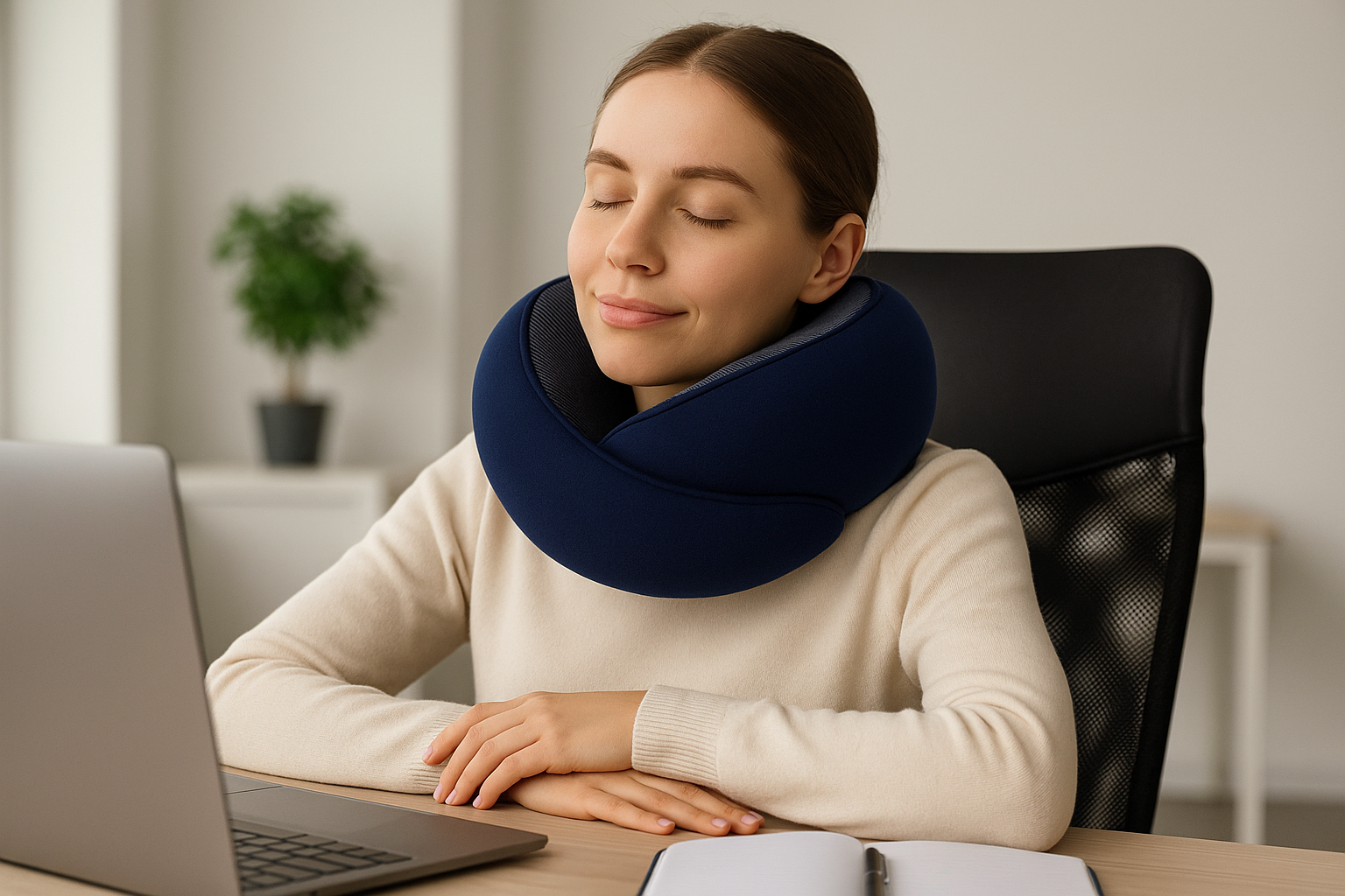 Ob im Zug, Flugzeug oder Auto: Unser Reise-Nackenkissen stützt deinen Nacken perfekt und sorgt dafür, dass du auch unterwegs erholsam schlafen kannst. So kommst du frisch, entspannt und voller Energie an jedem Ziel an.